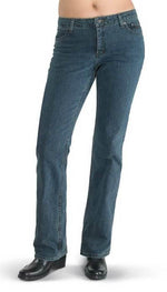 Harley-Davidson® Womens Stretch Fit Boot Cut Medium Blue Jeans Mid-Rise 99113-11VW. Designed to flatter all figures, the Stretch Bootcut Jean has a relaxed fit through the hip and thigh and is made for casual everyday comfort on and off your bike. Expect a flattering fit thanks to mid-rise styling, and the slight stretch compliments your curves. Mid-rise fit is straight through hip and relaxed through thigh. Classic 5-pocket styling with unique left side coin pocket with embroidere Bar & Shield logo for rider convenience. Back pockets have signature Harley-Davidson® embroidery. Embossed Bar & Shield leather patch on back waist. 98% cotton, 2% spandex. 99113-11VW