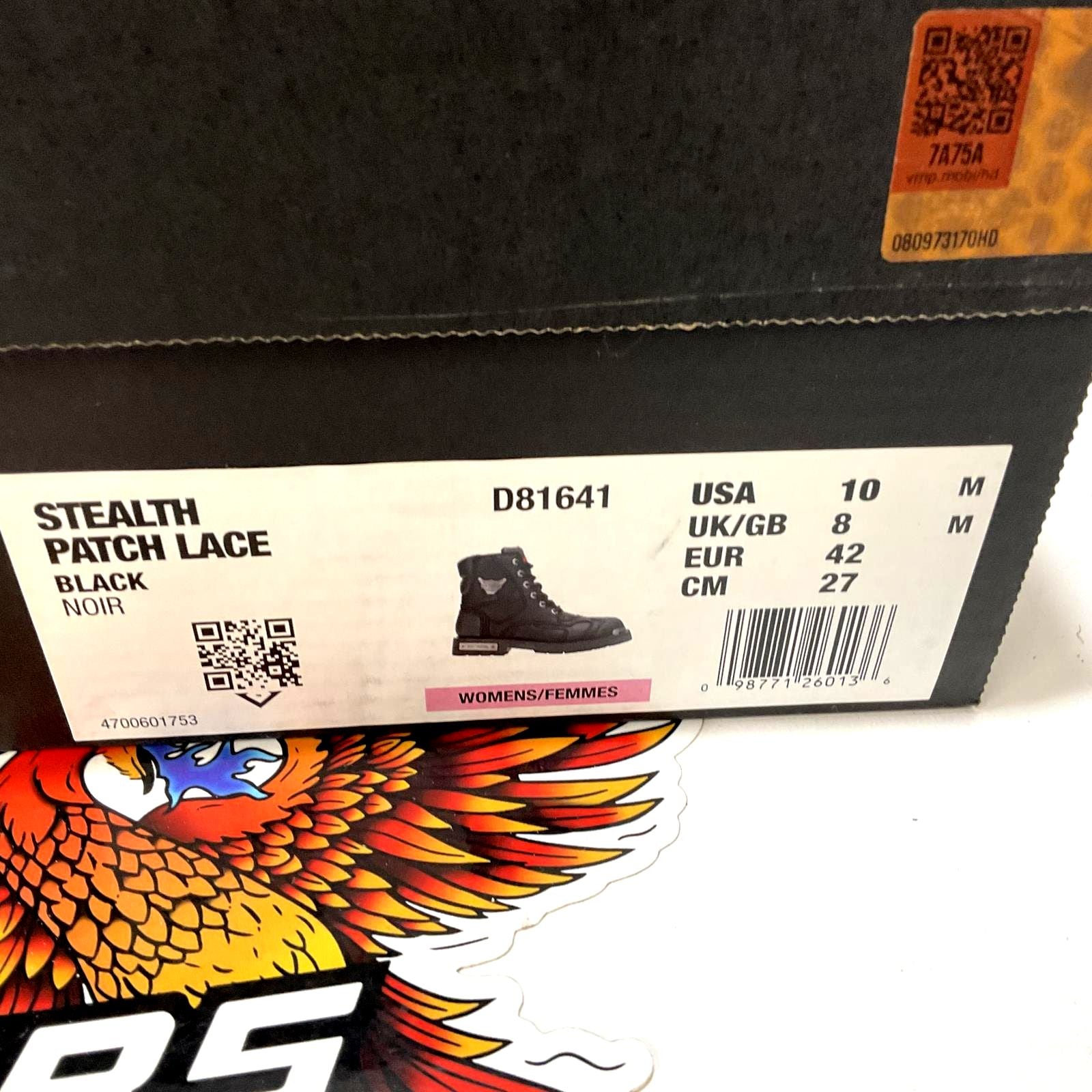 - Harley® Bar & Shield V-Wing metal badging on sides with metal Harley® badging on toes and heels; The tongue also has bright Harley® Orange badging