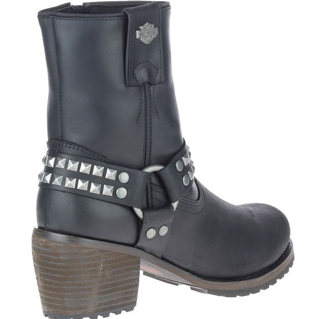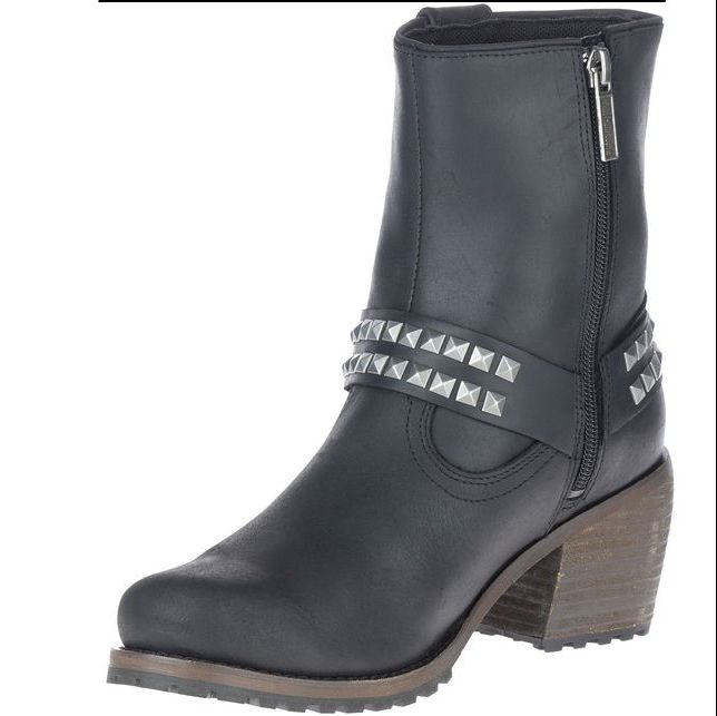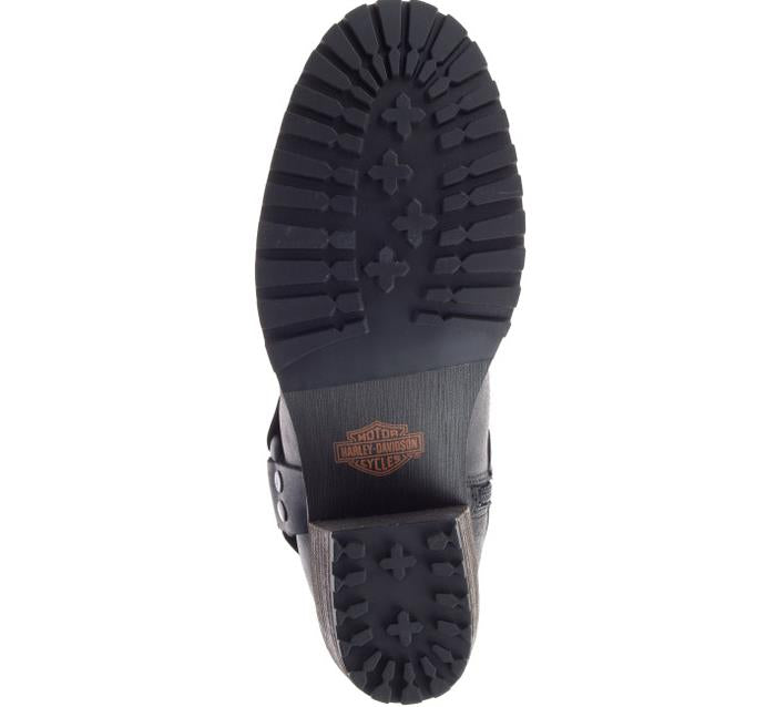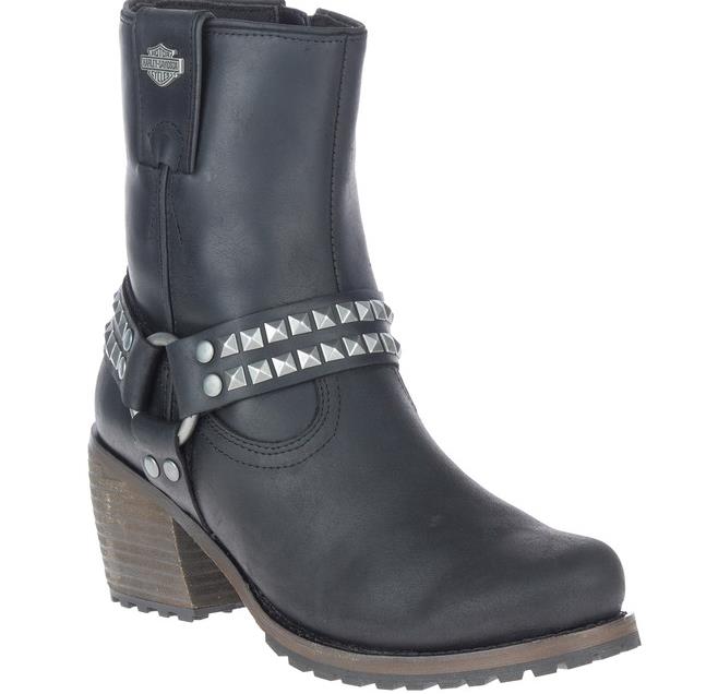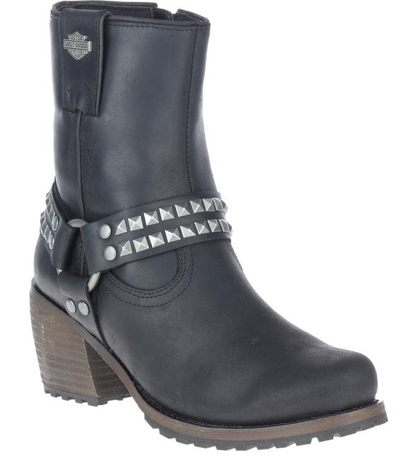Harley-Davidson® Women’s Tamori Black or Grey Fashion Harness Boots, Black-D84670, Grey-D84671. With 2.5-Inch stacked heels supporting a 6-Inch shaft, these harness styled boots make their mark anywhere you go. The harness straps feature twin rows of pyramidal shaped chromed rivets on both the front and the back cross straps. Each strap is riveted to the harness O’Ring. A metal Bar & Shield® badge adorns the pull-strap at the top of the shaft. Donning is made easy with YKK® locking inside zippers. Made with full-grain leather uppers and a full-length mesh lining, the boots have grippy rubber outsoles. With a smooth rounded toe, they have just the right amount of kick to work well with anything in your wardrobe – jeans, leggings, dresses and skirts. The boot's sole, insole and upper are bound using cement construction processes, a time honored and durable method that allows for a flexible and easy stride. A Harley® orange B & S logo is printed on the street-side instep. Total height: 8.5", Shaft height: 6", Heel height: 2.5". Sizes US: M 5-10, 11. Manufacturer Part Number, Black-D84670, Grey-D84671. Wolverine® and Harley-Davidson® have a long tradition of bringing original and functional footwear to our motorcycle enthusiasts. Loyal. Tough. Fearless. Our Footwear embodies the spirit of the open road, as well as the men and women who proudly wear the name. With a growing global presence, Harley-Davidson® Footwear markets functional riding and fashion footwear to anyone who seeks quality and values the Harley-Davidson® brand. Whether it's performance or fashion, we have what you need. Officially Licensed Harley-Davidson® Product by Wolverine®.