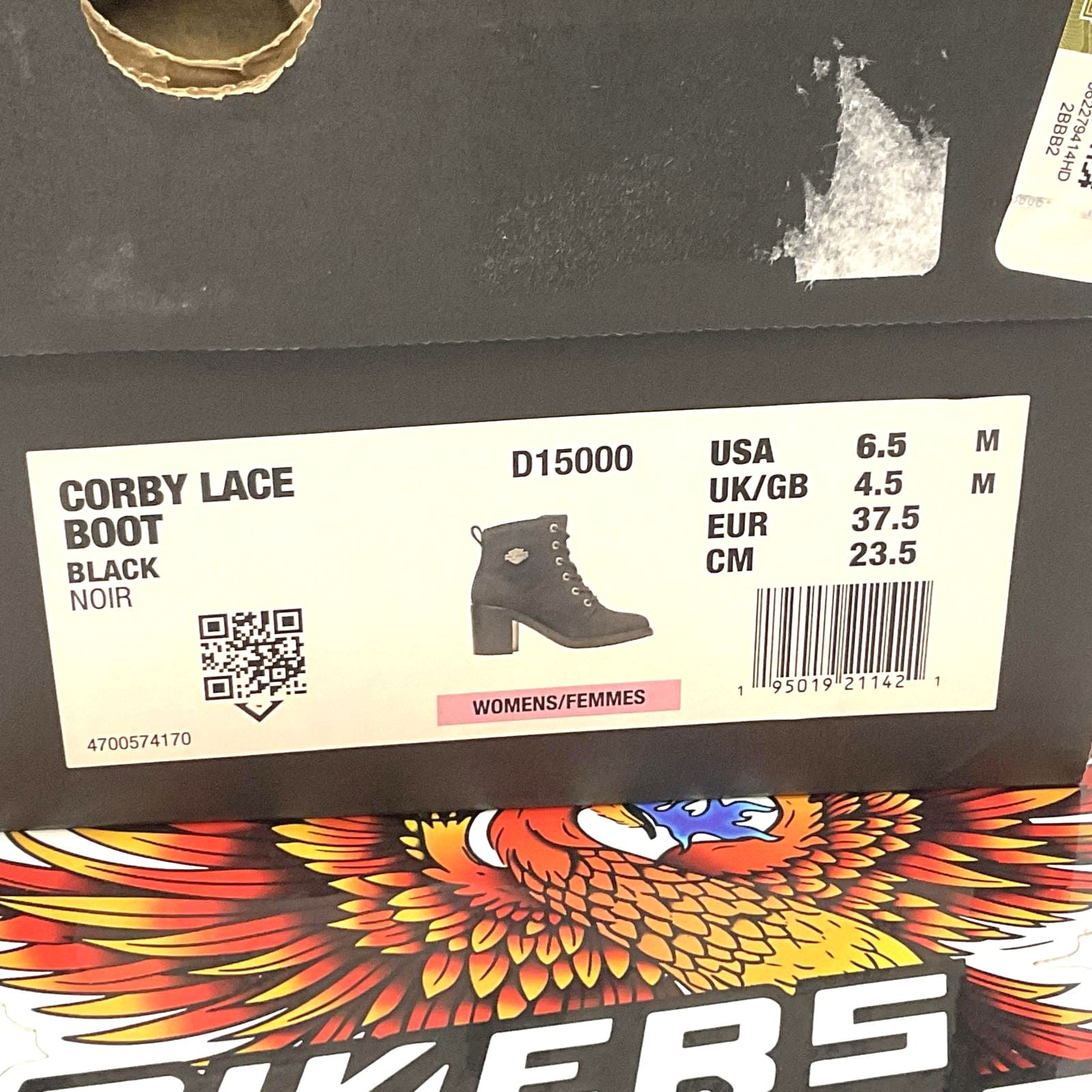 These boots are the perfect style to transform your look from daytime to nighttime city-lights bright. The Corby is a dress-up boot with tonal laces and antiqued metal hardware. The 3-inch heel lifts the full-grain leather uppers to a perfect height for the styling you want under the night-lights of the city. A full-length mesh lining means hours of comfort. The leather has a slight texture that is pleasing to the eye and touch. Don't waste time with lacing - the YKK® locking inside zippers makes it easy to pull-on or kick-off. The toe is rounded. The tonal laces are supported by logo metal eyelets that provide the perfect contrast of color. The tongue is padded and sports a debossed Harley-Davidson® Bar & Shield® logo. A metal Bar & Shield® logo is affixed near the top of the shaft. The heel is blocked and a pull-on strap at the top of the shaft assists in donning. Step-in, zip-up, and you are ready for the office or a night on-the-town. The boot's sole, insole and upper are bound using cement construction processes, a time honored and durable method that allows for a flexible and easy stride. Pair with color coordinated brightly printed blouses tucked into high-rise flared skirts, with jeans, cropped trousers, or slip dresses. For a sporty look, go for a white tee-shirt with a skirt. Total height: 7.5", Shaft height: 4.5", Heel height: 3". Sizes US: M 5-10, 11. Manufacturer Part Number, Black-D15000, Brown-D15001. Wolverine® and Harley-Davidson® have a long tradition of bringing original and functional footwear to our motorcycle enthusiasts. Loyal. Tough. Fearless. Our Footwear embodies the spirit of the open road, as well as the men and women who proudly wear the name. With a growing global presence, Harley-Davidson® Footwear markets functional riding and fashion footwear to anyone who seeks quality and values the Harley-Davidson® brand. Whether it's performance or fashion, we have what you need. Officially Licensed Harley-Davidson® Product by Wolverine®. These boots are not appropriate for wear while riding a motorcycle.