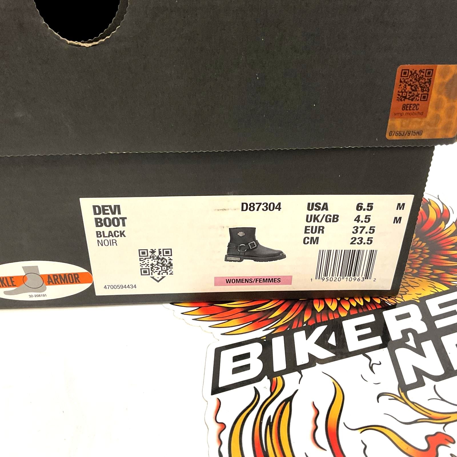 The Devi is a performance harness boot with premium D30® ankle protection and reflective piping. Designed with the metal Bar & Shield® toe and heel logo plates, this rebellious style is packed with H-D® power. This motorcycle boot has everything you want. Made with full-grain leather and a full-length mesh lining, the boot has D30® materials built-in, the world’s #1 impact protection brand. D30® materials offer the thinnest, most advanced protection against impact. Reflective piping enhances your visibility in low light conditions – a step towards being seen at night. These safety enhancements help ensure a safe arrival. The toe is rounded and supports a metal logo plate. Moving up the vamp, the front cross-strap attaches to the harness O’Ring with a logo buckle. Another logo metal plate is attached to the heel, and a Bar & Shield® logo is displayed at the top of the shaft. Donning is made easy with YKK® locking inside zippers – step-in, zip-up, and you’re ready to mount-up. The street-side outsole features grippy tread elements; a Harley-Davidson® logo in embossed at the instep. The boot's sole, insole and upper are bound using Goodyear® welt construction processes, a labor intensive and durable construction method. The boot’s outsole performance is rated "BEST" for slip and oil resistance. No matter the activity, whether uptown, downtown, at work or play, or while riding on your motorcycle, these boots will get you there in style and comfort. Total height: 6.75", Shaft height: 5.5", Heel height: 1.25". Sizes US: M 5-10, 11. Manufacturer Part Number, D87304. Wolverine® and Harley-Davidson® have a long tradition of bringing original and functional footwear to our motorcycle enthusiasts. Loyal. Tough. Fearless. Our Footwear embodies the spirit of the open road, as well as the men and women who proudly wear the name. With a growing global presence, Harley-Davidson® Footwear markets functional riding and fashion footwear to anyone who seeks quality and values the Harley-Davidson® brand. Whether it's performance or fashion, we have what you need. Officially Licensed Harley-Davidson® Product by Wolverine®. *Riding Appropriate – Abrasion, slip, and oil-resistant boots, ideal for riding motorcycles.