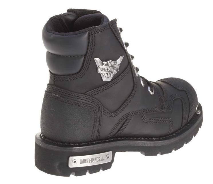 - Harley® Bar & Shield V-Wing metal badging on sides with metal Harley® badging on toes and heels; The tongue also has bright Harley® Orange badging