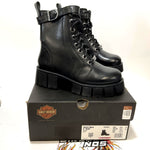These Uplift Buckle boots are right-on-trend with the moto boot fashion craze – no matter where they take you, heads will turn. The sleek all-black look with a top buckle and an over emphasized outsole is perfect for day-to-night looks. Feel powerful and confident with these always in-style boots. A smooth rounded toe leads up to metal logo eyelets with cord likening. A metal Harley-Davidson® badge marks the bottom lace. After stepping-in and zipping-up using the YKK® locking inside zippers, secure your fit using the top strap with logo buckle. Made with full-grain leather with a full-length mesh lining for total comfort, you are ready for anything. A debossed Bar & Shield® logo has been pressed into the outside facing heel counter. Lightweight outsoles and heels make each step seem effortless. The boot's sole, insole and upper are bound using cement construction processes, a time honored and durable method that allows for a flexible and easy stride. Adding to the 6-inch shaft, the gentle 1.75-inch heel adds the perfect lift. Another Harley® logo can be found on the street-side instep. For work or play, no matter the activity, these boots will turn heads, and in a good way. Total height: 7.75”, Shaft height: 6", Heel height: 1.75". Sizes US: M 5-10. Manufacturer Part Number D84807. Wolverine® and Harley-Davidson® have a long tradition of bringing original and functional footwear to our Motorcycle enthusiasts. Loyal. Tough. Fearless. Our Footwear embodies the spirit of the open road, as well as the men and women who proudly wear the name. With a growing global presence, Harley-Davidson® Footwear markets functional riding and Motorcycle footwear to anyone who seeks quality and values the Harley-Davidson® brand. Whether it's performance or Motorcycle, we have what you need. Officially Licensed Harley-Davidson® Product by Wolverine®.