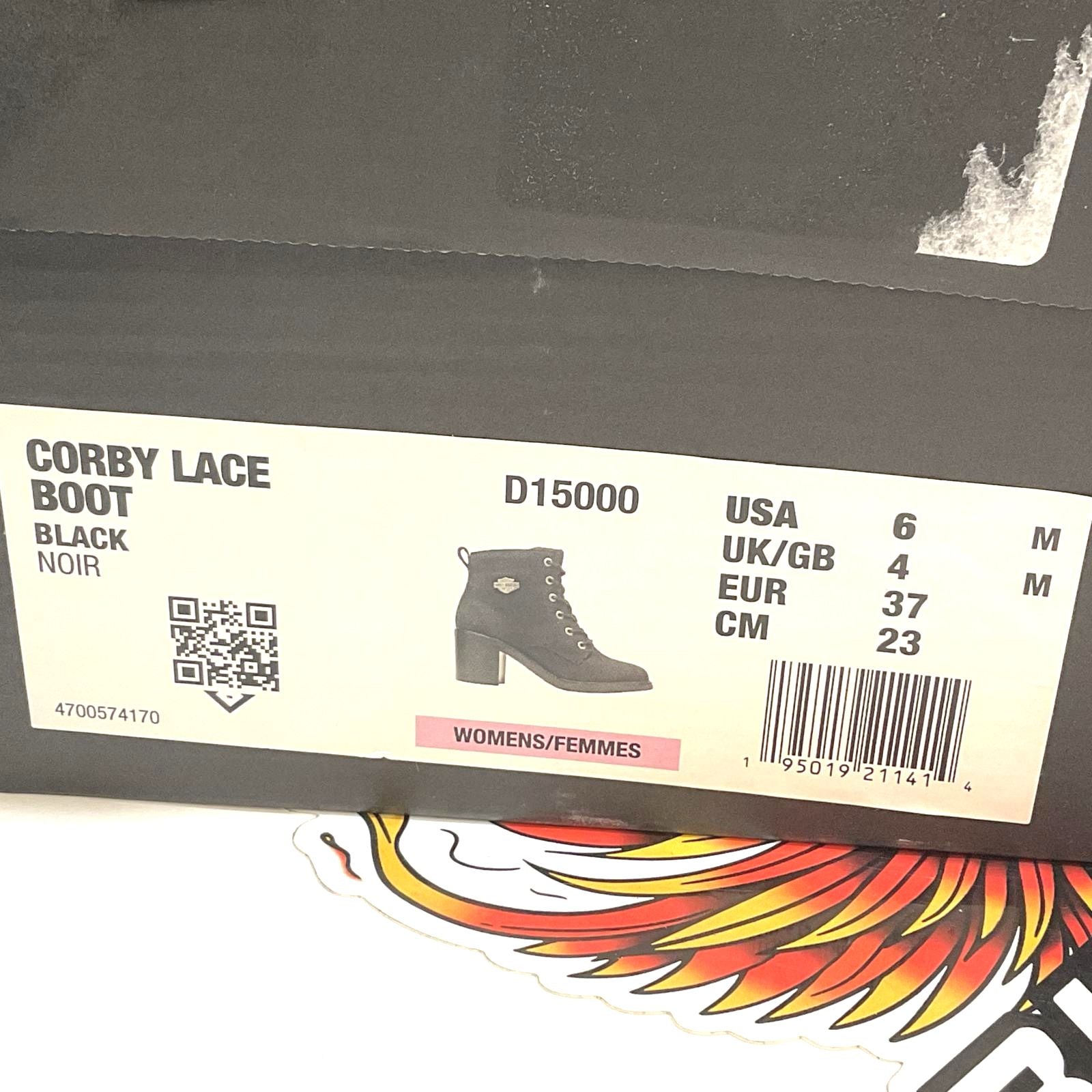 These boots are the perfect style to transform your look from daytime to nighttime city-lights bright. The Corby is a dress-up boot with tonal laces and antiqued metal hardware. The 3-inch heel lifts the full-grain leather uppers to a perfect height for the styling you want under the night-lights of the city. A full-length mesh lining means hours of comfort. The leather has a slight texture that is pleasing to the eye and touch. Don't waste time with lacing - the YKK® locking inside zippers makes it easy to pull-on or kick-off. The toe is rounded. The tonal laces are supported by logo metal eyelets that provide the perfect contrast of color. The tongue is padded and sports a debossed Harley-Davidson® Bar & Shield® logo. A metal Bar & Shield® logo is affixed near the top of the shaft. The heel is blocked and a pull-on strap at the top of the shaft assists in donning. Step-in, zip-up, and you are ready for the office or a night on-the-town. The boot's sole, insole and upper are bound using cement construction processes, a time honored and durable method that allows for a flexible and easy stride. Pair with color coordinated brightly printed blouses tucked into high-rise flared skirts, with jeans, cropped trousers, or slip dresses. For a sporty look, go for a white tee-shirt with a skirt. Total height: 7.5", Shaft height: 4.5", Heel height: 3". Sizes US: M 5-10, 11. Manufacturer Part Number, Black-D15000, Brown-D15001. Wolverine® and Harley-Davidson® have a long tradition of bringing original and functional footwear to our motorcycle enthusiasts. Loyal. Tough. Fearless. Our Footwear embodies the spirit of the open road, as well as the men and women who proudly wear the name. With a growing global presence, Harley-Davidson® Footwear markets functional riding and fashion footwear to anyone who seeks quality and values the Harley-Davidson® brand. Whether it's performance or fashion, we have what you need. Officially Licensed Harley-Davidson® Product by Wolverine®. These boots are not appropriate for wear while riding a motorcycle.