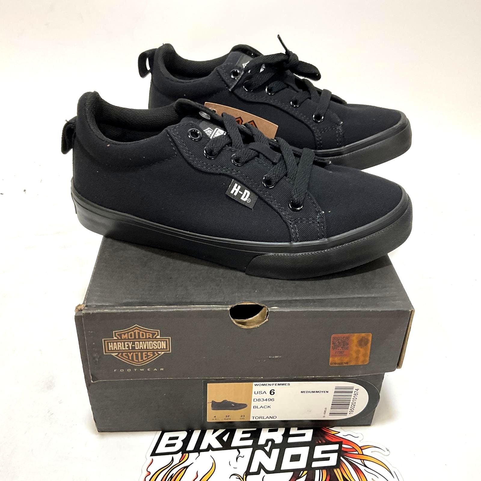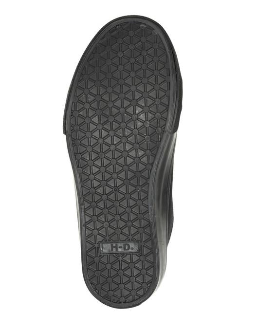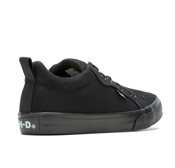 Feel comfortable and look iconic with the Torland all black canvas vulcanized sneaker. With a low profile, rubber outsoles, and a classic Bar & Shield® logo on the tongue, these sneakers will take your street cred to the next level. With a padded cuff and tongue, traditional lacing and a canvas lining, all-day comfort is assured. There is also a fabric H-D® badge sewn onto the eyelet panel, as well as another H-D® badge on the backside of the heel. The street-side sole has cross-hatched tread elements for a sure footing. The boot's sole, insole and upper are bound using vulcanized processes, a proven technology that binds the upper, midsole, and sole components making for a sturdy and durable sneaker. The end result - these sneakers will last for years. Uptown, downtown, at work or play, these canvas sneakers will carry you in style and comfort. Shaft height: 2", Heel height: 0.75". Sizes US: M 5-10, 11. Manufacturer Part Number, D83496. Wolverine® and Harley-Davidson® have a long tradition of bringing original and functional footwear to our Motorcycle enthusiasts. Loyal. Tough. Fearless. Our Footwear embodies the spirit of the open road, as well as the men and women who proudly wear the name. With a growing global presence, Harley-Davidson® Footwear markets functional riding and Motorcycle footwear to anyone who seeks quality and values the Harley-Davidson® brand. Whether it's performance or Motorcycle, we have what you need. Officially Licensed Harley-Davidson® Product by Wolverine®. These sneakers are not recommended for wear while riding a motorcycle.