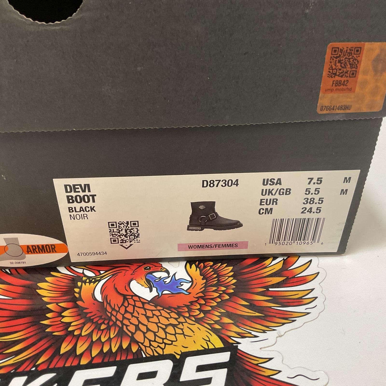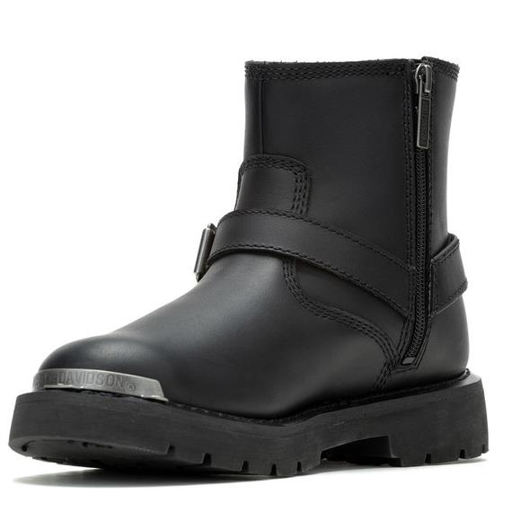The Devi is a performance harness boot with premium D30® ankle protection and reflective piping. Designed with the metal Bar & Shield® toe and heel logo plates, this rebellious style is packed with H-D® power. This motorcycle boot has everything you want. Made with full-grain leather and a full-length mesh lining, the boot has D30® materials built-in, the world’s #1 impact protection brand. D30® materials offer the thinnest, most advanced protection against impact. Reflective piping enhances your visibility in low light conditions – a step towards being seen at night. These safety enhancements help ensure a safe arrival. The toe is rounded and supports a metal logo plate. Moving up the vamp, the front cross-strap attaches to the harness O’Ring with a logo buckle. Another logo metal plate is attached to the heel, and a Bar & Shield® logo is displayed at the top of the shaft. Donning is made easy with YKK® locking inside zippers – step-in, zip-up, and you’re ready to mount-up. The street-side outsole features grippy tread elements; a Harley-Davidson® logo in embossed at the instep. The boot's sole, insole and upper are bound using Goodyear® welt construction processes, a labor intensive and durable construction method. The boot’s outsole performance is rated "BEST" for slip and oil resistance. No matter the activity, whether uptown, downtown, at work or play, or while riding on your motorcycle, these boots will get you there in style and comfort. Total height: 6.75", Shaft height: 5.5", Heel height: 1.25". Sizes US: M 5-10, 11. Manufacturer Part Number, D87304. Wolverine® and Harley-Davidson® have a long tradition of bringing original and functional footwear to our motorcycle enthusiasts. Loyal. Tough. Fearless. Our Footwear embodies the spirit of the open road, as well as the men and women who proudly wear the name. With a growing global presence, Harley-Davidson® Footwear markets functional riding and fashion footwear to anyone who seeks quality and values the Harley-Davidson® brand. Whether it's performance or fashion, we have what you need. Officially Licensed Harley-Davidson® Product by Wolverine®. *Riding Appropriate – Abrasion, slip, and oil-resistant boots, ideal for riding motorcycles.