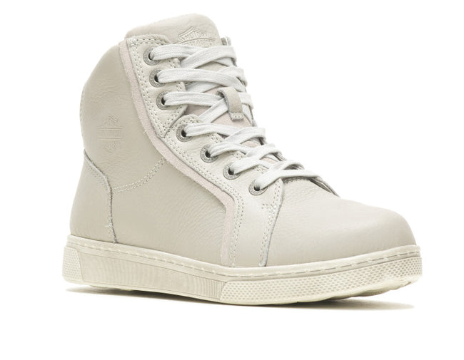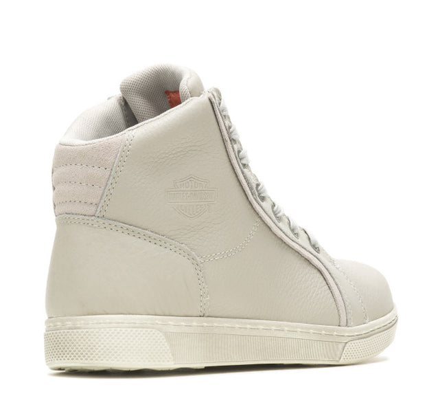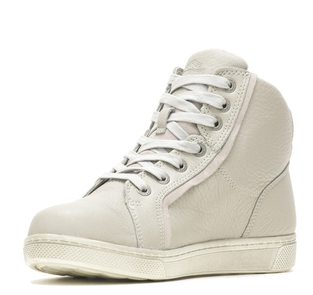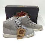 Harley-Davidson® Women's Riding Appropriate* Mackey 4-Inch Light Grey Waterproof Motorcycle Boots, Light Grey-D87224. Experience the freedom of a sneaker, and the function of a boot. An unusual tough-girl moto vibe style goes with you into the evening's activities when these boots are worn with skirts or skinny jeans. And on a motorcycle, these boots bring a completely different look - tough and ready for anything. If being different is important, these Mackey boots are just that. With a lace-up styling, logo eyelets and a Bar & Shield® logo on the tongue and shaft, you're sure to be seen and noticed. The boot’s leather uppers have a slight texture. The toe is round and the sole is flat. The boots are made with waterproof full-grain leather uppers with a breathable Hydro-Guard™ waterproof membrane lining. PORON® is built into the boots, providing ankle impact protection. The boots are also CE certified as protective footwear for motorcycle riders. The soles are rubber on the street side. The boot's sole, insole and upper are bound using cement construction processes, a time honored and durable method that allows for a flexible and easy stride. The street side sole has an embedded Harley® orange Bar & Shield® logo at the instep. These boots are street right and road ready. Total height: 5.25”, Shaft height: 4", Heel height: 1.25". Wolverine® and Harley-Davidson® have a long tradition of bringing original and functional footwear to our Motorcycle Lace-Up enthusiasts. Loyal. Tough. Fearless. Our Footwear embodies the spirit of the open road, as well as the men and women who proudly wear the name. With a growing global presence, Harley-Davidson® Footwear markets functional riding and fashion footwear to anyone who seeks quality and values the Harley-Davidson® brand. Whether it's performance or fashion, we have what you need. Officially Licensed Harley-Davidson® Product by Wolverine®. *Riding Appropriate – Abrasion, slip, and oil-resistant boots, ideal for riding motorcycles.
