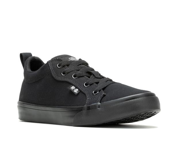 Feel comfortable and look iconic with the Torland all black canvas vulcanized sneaker. With a low profile, rubber outsoles, and a classic Bar & Shield® logo on the tongue, these sneakers will take your street cred to the next level. With a padded cuff and tongue, traditional lacing and a canvas lining, all-day comfort is assured. There is also a fabric H-D® badge sewn onto the eyelet panel, as well as another H-D® badge on the backside of the heel. The street-side sole has cross-hatched tread elements for a sure footing. The boot's sole, insole and upper are bound using vulcanized processes, a proven technology that binds the upper, midsole, and sole components making for a sturdy and durable sneaker. The end result - these sneakers will last for years. Uptown, downtown, at work or play, these canvas sneakers will carry you in style and comfort. Shaft height: 2", Heel height: 0.75". Sizes US: M 5-10, 11. Manufacturer Part Number, D83496. Wolverine® and Harley-Davidson® have a long tradition of bringing original and functional footwear to our Motorcycle enthusiasts. Loyal. Tough. Fearless. Our Footwear embodies the spirit of the open road, as well as the men and women who proudly wear the name. With a growing global presence, Harley-Davidson® Footwear markets functional riding and Motorcycle footwear to anyone who seeks quality and values the Harley-Davidson® brand. Whether it's performance or Motorcycle, we have what you need. Officially Licensed Harley-Davidson® Product by Wolverine®. These sneakers are not recommended for wear while riding a motorcycle.