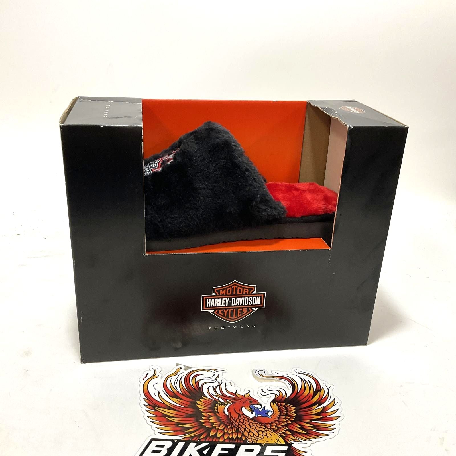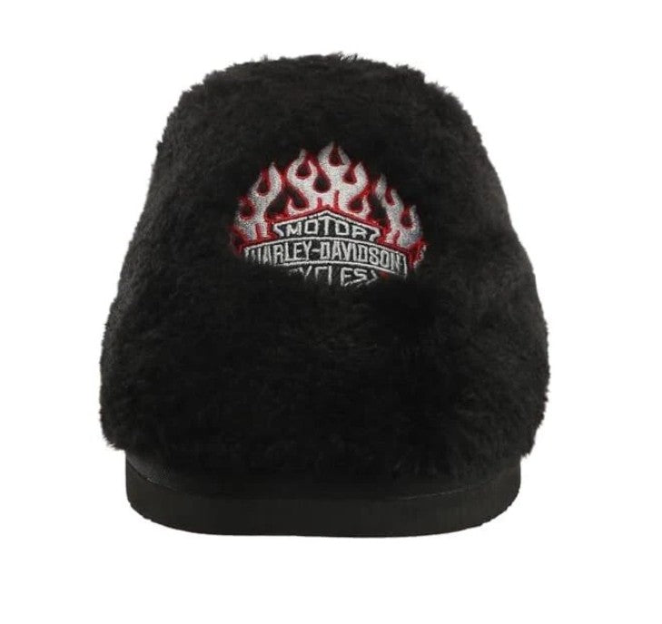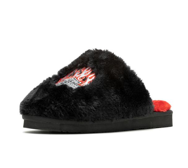 Harley-Davidson® Women's Barela Flame Logo Fur Slippers, D84801. These slippers are made for year-round wear, and are especially perfect for the Holidays – warm and comfy-cozy. Featuring a classic Harley-Davidson® Bar & Shield® red-hot flame embellished logo, these slippers are perfect for relaxing and strolling around the house, and are also suitable for the occasional trip to the mailbox or to fetch the morning newspaper. The style is classic with that special Harley® touch. The uppers are finished in a plush faux fur, as is the lining. This means all-day comfort for your feet. If you are looking for a perfect gift, this should also be at the top of your list. The outsole is lightweight, perfect for paddling around the house. The red lining beautifully ties-in with the Bar & Shield® flame logo. The soles and the uppers are bound using cement construction processes. We think you’ll agree - when the shoes come off, it’s time for Harley® slippers. Heel height: 0.75". Sizes US: M 5-11 (Whole sizes only). Manufacturer Part Number, Black-D84801. Wolverine® and Harley-Davidson® have a long tradition of bringing original and functional footwear to our motorcycle enthusiasts. Loyal. Tough. Fearless. Our Footwear embodies the spirit of the open road, as well as the men and women who proudly wear the name. With a growing global presence, Harley-Davidson® Footwear markets functional riding and fashion footwear to anyone who seeks quality and values the Harley-Davidson® brand. Whether it's performance or fashion, we have what you need. Officially Licensed Harley-Davidson® Product by Wolverine®.