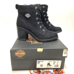 These boots are the perfect style to transform your look from daytime to nighttime city-lights bright. The Corby is a dress-up boot with tonal laces and antiqued metal hardware. The 3-inch heel lifts the full-grain leather uppers to a perfect height for the styling you want under the night-lights of the city. A full-length mesh lining means hours of comfort. The leather has a slight texture that is pleasing to the eye and touch. Don't waste time with lacing - the YKK® locking inside zippers makes it easy to pull-on or kick-off. The toe is rounded. The tonal laces are supported by logo metal eyelets that provide the perfect contrast of color. The tongue is padded and sports a debossed Harley-Davidson® Bar & Shield® logo. A metal Bar & Shield® logo is affixed near the top of the shaft. The heel is blocked and a pull-on strap at the top of the shaft assists in donning. Step-in, zip-up, and you are ready for the office or a night on-the-town. The boot's sole, insole and upper are bound using cement construction processes, a time honored and durable method that allows for a flexible and easy stride. Pair with color coordinated brightly printed blouses tucked into high-rise flared skirts, with jeans, cropped trousers, or slip dresses. For a sporty look, go for a white tee-shirt with a skirt. Total height: 7.5", Shaft height: 4.5", Heel height: 3". Sizes US: M 5-10, 11. Manufacturer Part Number, Black-D15000, Brown-D15001. Wolverine® and Harley-Davidson® have a long tradition of bringing original and functional footwear to our motorcycle enthusiasts. Loyal. Tough. Fearless. Our Footwear embodies the spirit of the open road, as well as the men and women who proudly wear the name. With a growing global presence, Harley-Davidson® Footwear markets functional riding and fashion footwear to anyone who seeks quality and values the Harley-Davidson® brand. Whether it's performance or fashion, we have what you need. Officially Licensed Harley-Davidson® Product by Wolverine®. These boots are not appropriate for wear while riding a motorcycle.