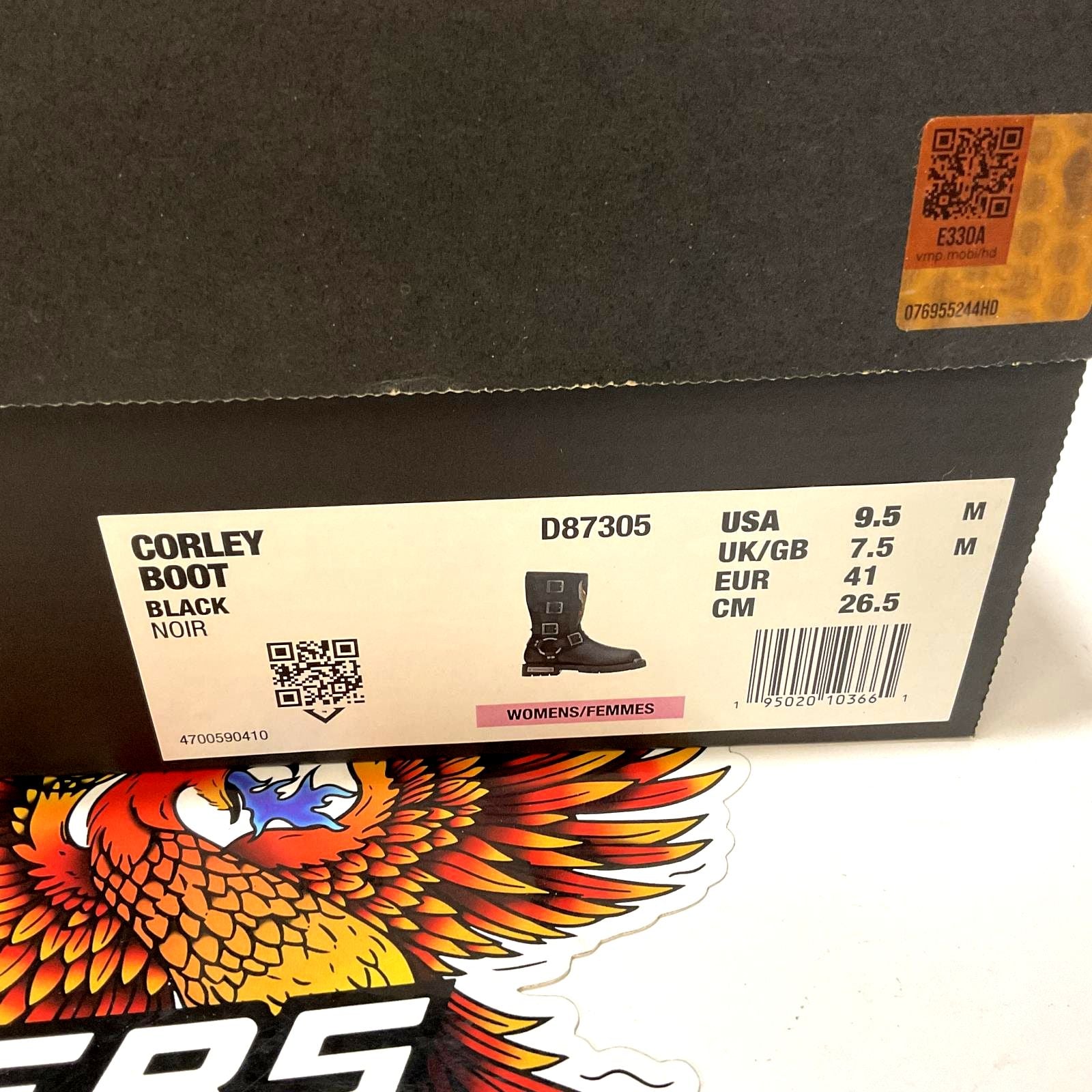 Authentic to the last stitch. The Corley is a standout with eagle embroidery, buckles, a harness O-Ring, and metal plate logo detailing on the toe and the heel. The boots are designed with full-grain leather uppers, a full-length mesh lining, and a rubber outsole. The eyes are immediate drawn to the colorful Harley-Davidson® Eagle logo, placed front and center on the boot’s shaft. The toe is rounded, and the vamp features a classic harness cross strap and logo buckle. Logo buckles adorn the shaft, allowing for a custom comfort fit. With the YKK® locking inside zippers, just step-in, zip-up and you are out the door. The outsole is made of grippy rubber, with a classic orange Bar & Shield® logo inserted at the street-side in-step. Additional orange tread elements are fitted at the front and on the heel. The boot's sole, insole and upper are bound using Goodyear® Welt construction, completing the boot with trusted durability. The Corley has everything H-D® you crave packed into one boot. Total height: 11.5", Shaft height: 10", Heel height: 1.5". Sizes US: M 5-10, 11. Manufacturer Part Number, D87305, D87306. Wolverine® and Harley-Davidson® have a long tradition of bringing original and functional footwear to our Motorcycle enthusiasts. Loyal. Tough. Fearless. Our Footwear embodies the spirit of the open road, as well as the men and women who proudly wear the name. With a growing global presence, Harley-Davidson® Footwear markets functional riding and Motorcycle footwear to anyone who seeks quality and values the Harley-Davidson® brand. Whether it's performance or Motorcycle, we have what you need. Officially Licensed Harley-Davidson® Product by Wolverine®. These boots are not recommended for riding on a motorcycle.