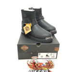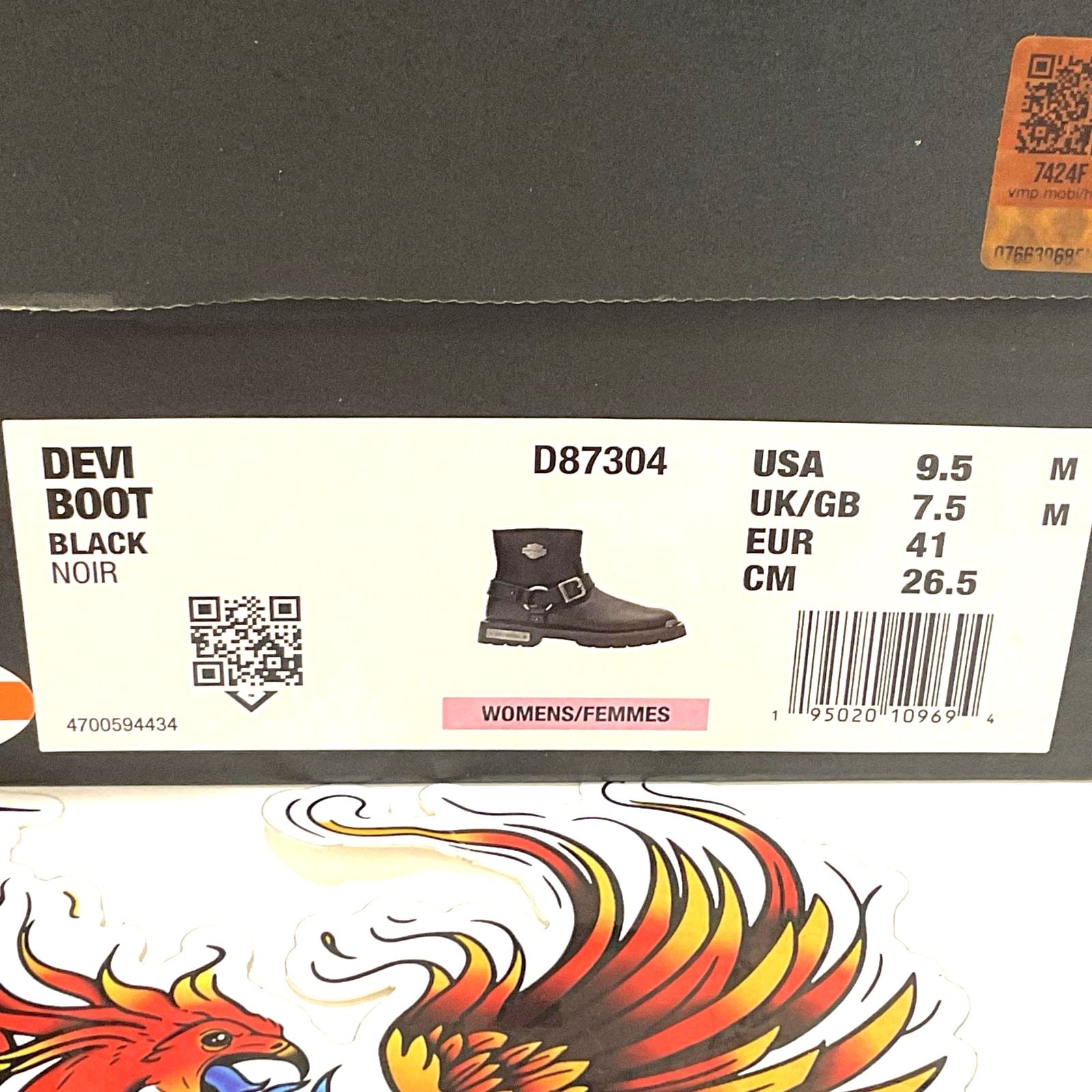 The Devi is a performance harness boot with premium D30® ankle protection and reflective piping. Designed with the metal Bar & Shield® toe and heel logo plates, this rebellious style is packed with H-D® power. This motorcycle boot has everything you want. Made with full-grain leather and a full-length mesh lining, the boot has D30® materials built-in, the world’s #1 impact protection brand. D30® materials offer the thinnest, most advanced protection against impact. Reflective piping enhances your visibility in low light conditions – a step towards being seen at night. These safety enhancements help ensure a safe arrival. The toe is rounded and supports a metal logo plate. Moving up the vamp, the front cross-strap attaches to the harness O’Ring with a logo buckle. Another logo metal plate is attached to the heel, and a Bar & Shield® logo is displayed at the top of the shaft. Donning is made easy with YKK® locking inside zippers – step-in, zip-up, and you’re ready to mount-up. The street-side outsole features grippy tread elements; a Harley-Davidson® logo in embossed at the instep. The boot's sole, insole and upper are bound using Goodyear® welt construction processes, a labor intensive and durable construction method. The boot’s outsole performance is rated "BEST" for slip and oil resistance. No matter the activity, whether uptown, downtown, at work or play, or while riding on your motorcycle, these boots will get you there in style and comfort. Total height: 6.75", Shaft height: 5.5", Heel height: 1.25". Sizes US: M 5-10, 11. Manufacturer Part Number, D87304. Wolverine® and Harley-Davidson® have a long tradition of bringing original and functional footwear to our motorcycle enthusiasts. Loyal. Tough. Fearless. Our Footwear embodies the spirit of the open road, as well as the men and women who proudly wear the name. With a growing global presence, Harley-Davidson® Footwear markets functional riding and fashion footwear to anyone who seeks quality and values the Harley-Davidson® brand. Whether it's performance or fashion, we have what you need. Officially Licensed Harley-Davidson® Product by Wolverine®. *Riding Appropriate – Abrasion, slip, and oil-resistant boots, ideal for riding motorcycles.
