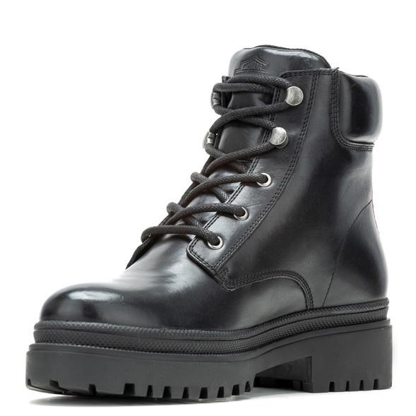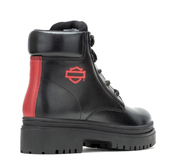 Harley-Davidson® Women's Tressler 5.5-Inch Black Fashion Boots, D87288. Welcome to the newest version of the ladies Tressler, designed with a fashion forward, edgy red, embroidered HD® silhouette logo that provides a pop of red for an unexpected moto look. Featuring full-grain leather uppers, a full-length mesh lining, and lightweight outsoles, this boot has a modest 1.5" heel making them comfortable and ready for almost any activity, day or night. With a fashion forward edgy HD® embroidered silhouette, the Tressler 5.5-Inch motorcycle boot is built for whatever awaits you. The shaft also features a red panel from the heel to the cuff. The toe is rounded and smooth, and the tongue is padded. The cuff has additional padding for all day comfort. Speed-hooks facilitate the lacing and tie-off for a quick getaway. A Bar & Shield® logo is debossed on the on the tongue. The boot's sole, insole and upper are bound using cement construction processes, a time honored and durable method that allows for a flexible and easy stride. Total height: 7", Shaft height: 5.5", Heel height: 1.5". Sizes US: M 5-10, 11. Manufacturer Part Number, D87288. Wolverine® and Harley-Davidson® have a long tradition of bringing original and functional footwear to our motorcycle enthusiasts. Loyal. Tough. Fearless. Our Footwear embodies the spirit of the open road, as well as the men and women who proudly wear the name. With a growing global presence, Harley-Davidson® Footwear markets functional riding and fashion footwear to anyone who seeks quality and values the Harley-Davidson® brand. Whether it's performance or fashion, we have what you need. Officially Licensed Harley-Davidson® Product by Wolverine®.