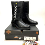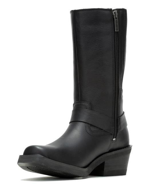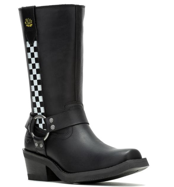 The popular Korsen Harness has been given added height and styled with a checker board stripe and flower detail - a fun addition to your everyday wardrobe. Featuring heat deflecting full-grain leather, a waterproof Breathable Hydro-Guard™ waterproof membrane lining, a rubber outsole, and an inside gore for the optimal fit, this core style is versatile in both function and style. Made with a western flair, this full-grain leather boot with its Harness detail is ideal for everyday wear - at the office, for social functions, line dancing at the club, or for everyday wear. The YKK® locking inside zipper offers the quick and secure fit that you crave. The toe is squared, invoking a little more western edge. The classic O-Ring harness style is both versatile and functional, supporting both the fore and after straps. A debossed silhouette Bar & Shield logo in on the heel’s counter. A feminine touch has been added at the top of the shaft, above the checker board stripe. The boot's sole, insole and upper are bound using cement construction processes, a time honored and durable method that allows for a flexible and easy stride. The western heel provides an ample 2.25-inch lift, and the rubber outsole means a soft landing with each step. A Bar & Shield® logo is inserted into the street side instep. Pair with jeans, dresses or middies for a modern uptown look wherever you go. Total height: 12.25", Shaft height: 10", Heel height: 2.25". Sizes US: M 5-10, 11. Manufacturer Part Number, D87296. Wolverine® and Harley-Davidson® have a long tradition of bringing original and functional footwear to our motorcycle enthusiasts. Loyal. Tough. Fearless. Our Footwear embodies the spirit of the open road, as well as the men and women who proudly wear the name. With a growing global presence, Harley-Davidson® Footwear markets functional riding and fashion footwear to anyone who seeks quality and values the Harley-Davidson® brand. Whether it's performance or fashion, we have what you need. Officially Licensed Harley-Davidson® Product by Wolverine®. These boots are not appropriate for wear while riding a motorcycle.