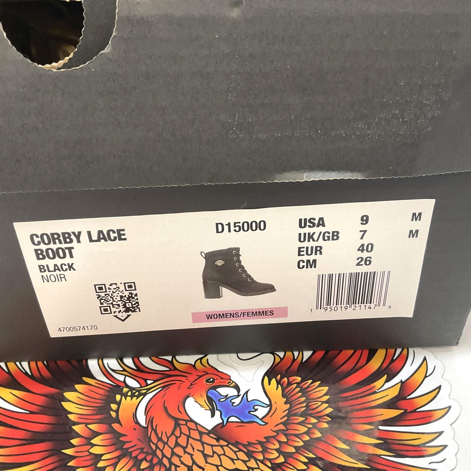 These boots are the perfect style to transform your look from daytime to nighttime city-lights bright. The Corby is a dress-up boot with tonal laces and antiqued metal hardware. The 3-inch heel lifts the full-grain leather uppers to a perfect height for the styling you want under the night-lights of the city. A full-length mesh lining means hours of comfort. The leather has a slight texture that is pleasing to the eye and touch. Don't waste time with lacing - the YKK® locking inside zippers makes it easy to pull-on or kick-off. The toe is rounded. The tonal laces are supported by logo metal eyelets that provide the perfect contrast of color. The tongue is padded and sports a debossed Harley-Davidson® Bar & Shield® logo. A metal Bar & Shield® logo is affixed near the top of the shaft. The heel is blocked and a pull-on strap at the top of the shaft assists in donning. Step-in, zip-up, and you are ready for the office or a night on-the-town. The boot's sole, insole and upper are bound using cement construction processes, a time honored and durable method that allows for a flexible and easy stride. Pair with color coordinated brightly printed blouses tucked into high-rise flared skirts, with jeans, cropped trousers, or slip dresses. For a sporty look, go for a white tee-shirt with a skirt. Total height: 7.5", Shaft height: 4.5", Heel height: 3". Sizes US: M 5-10, 11. Manufacturer Part Number, Black-D15000, Brown-D15001. Wolverine® and Harley-Davidson® have a long tradition of bringing original and functional footwear to our motorcycle enthusiasts. Loyal. Tough. Fearless. Our Footwear embodies the spirit of the open road, as well as the men and women who proudly wear the name. With a growing global presence, Harley-Davidson® Footwear markets functional riding and fashion footwear to anyone who seeks quality and values the Harley-Davidson® brand. Whether it's performance or fashion, we have what you need. Officially Licensed Harley-Davidson® Product by Wolverine®. These boots are not appropriate for wear while riding a motorcycle.