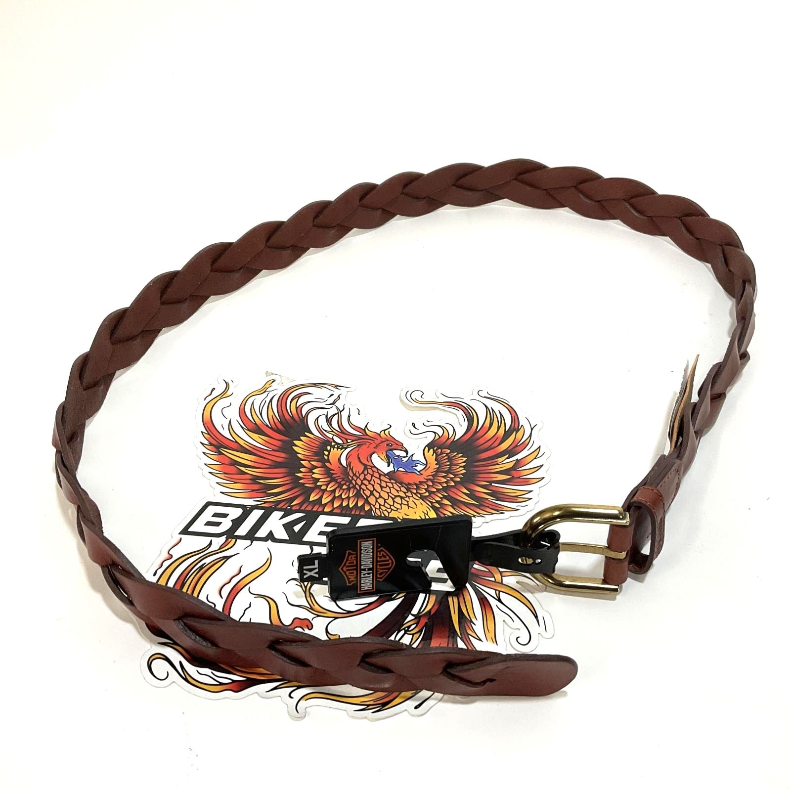 This classic Harley-Davidson belt is designed for comfort and style. It's made of genuine leather, 32mm wide, and features an antique nickel finish. The braided leather style adds an elegant finish to any outfit.