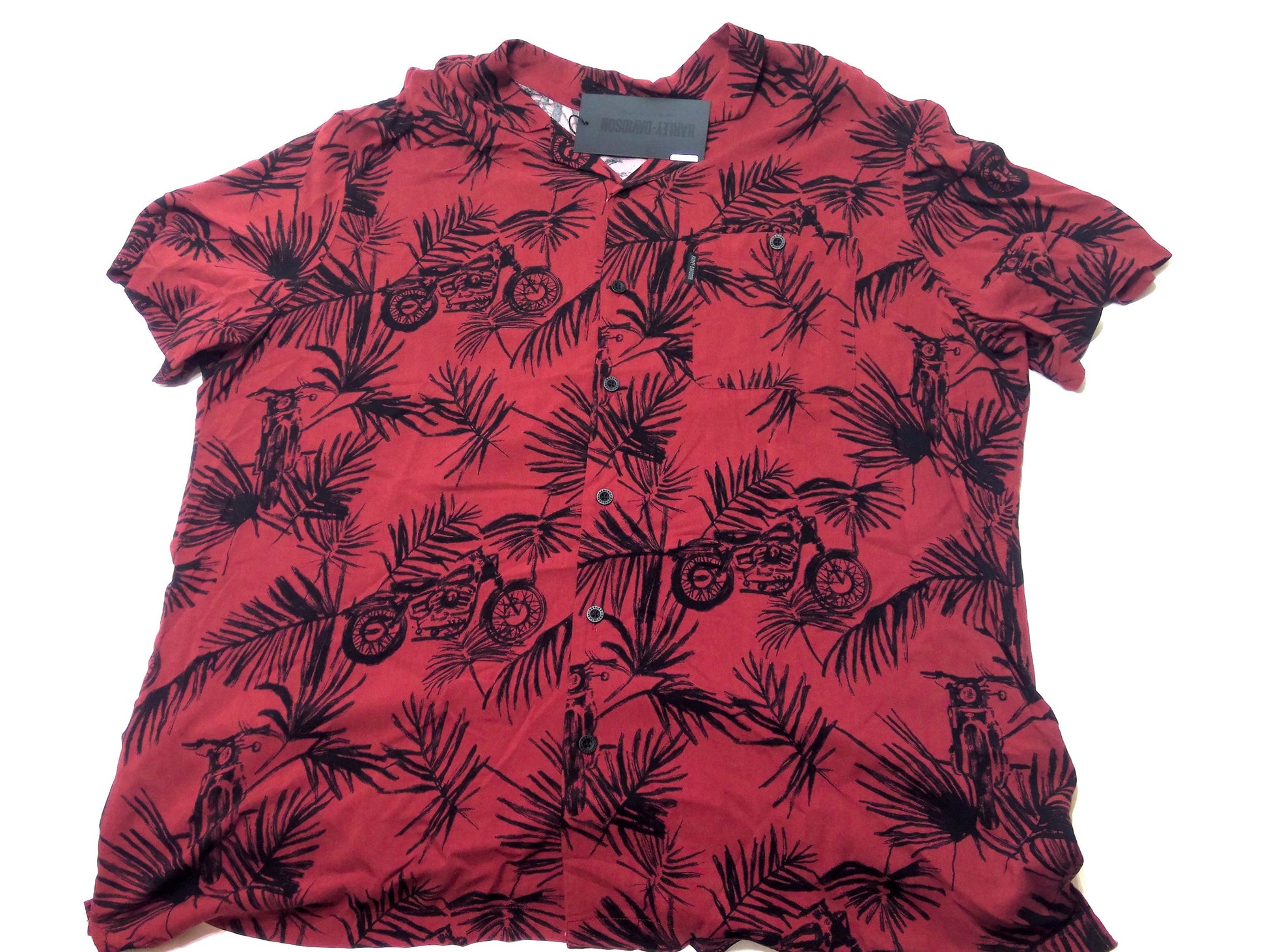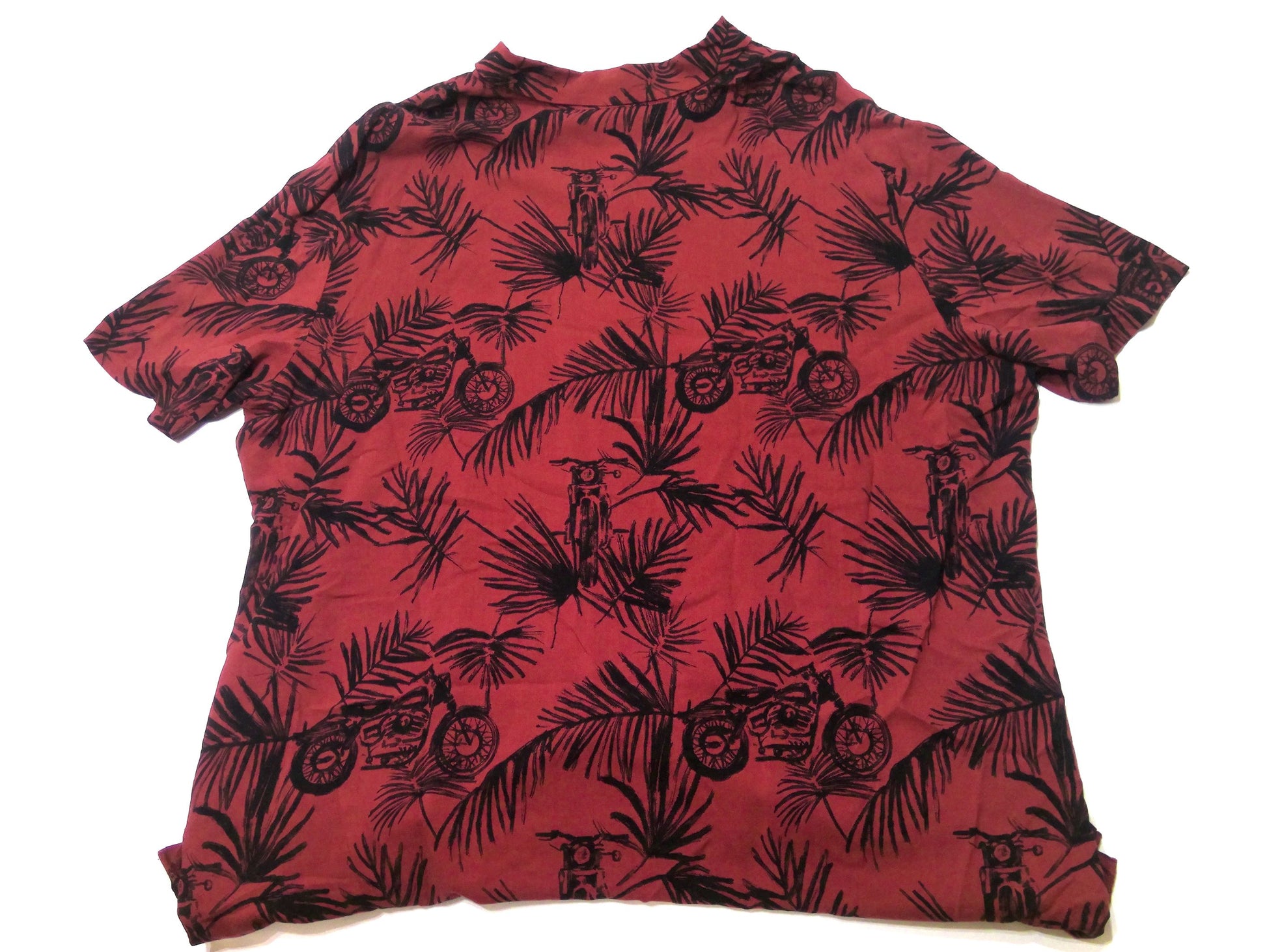 Tropical style gets a hit of Harley pride in our Celebration Allover Shirt. This men’s short sleeve shirt is crafted from 100% rayon challis for weightless comfort. Its allover custom print features dreamy palm trees and motorcycles, proving there’s no better pairing than warm weather and Harley-Davidson.