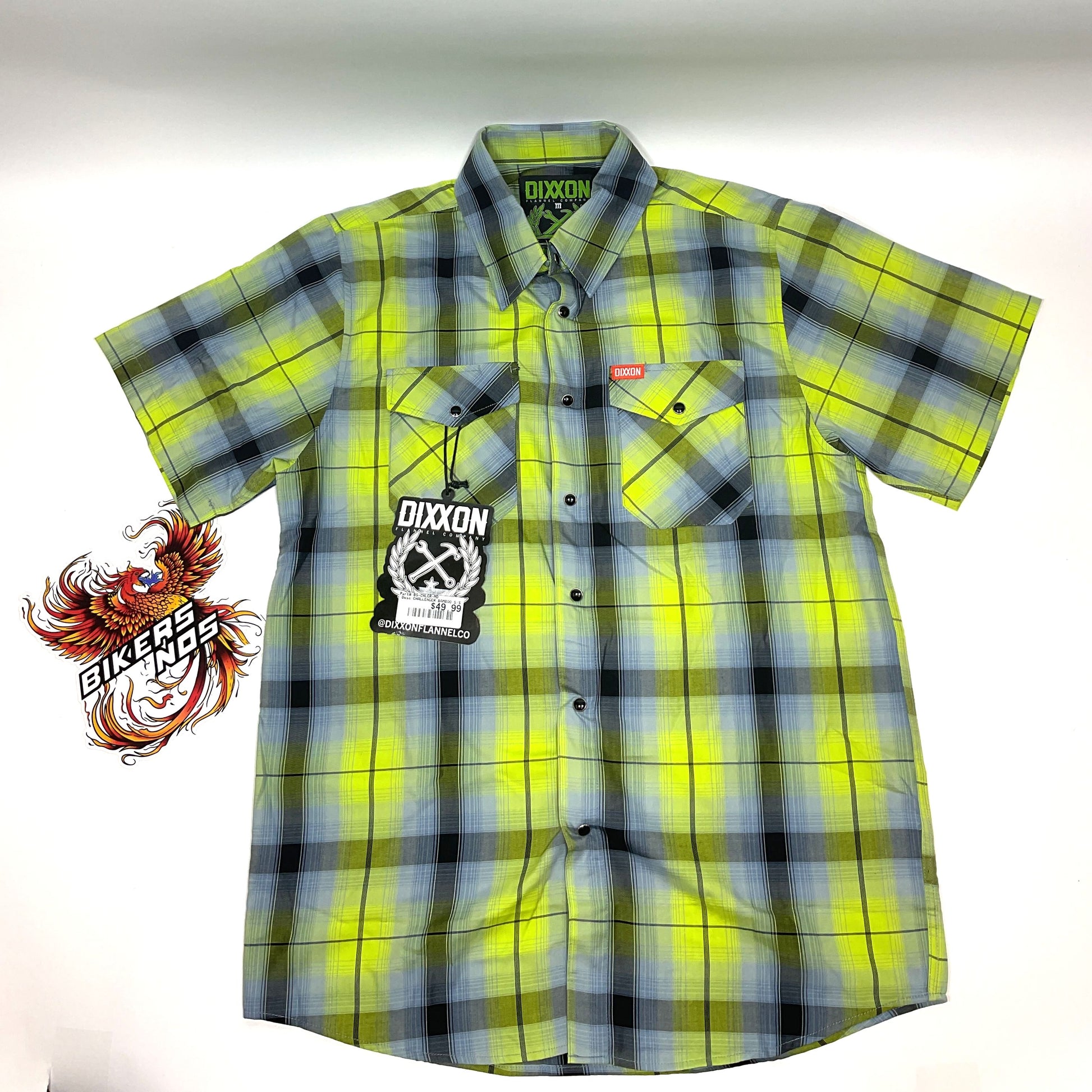 Men’s green, black, and gray plaid patterned short sleeve bamboo shirt