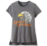 Satisfy your retro-loving style and open-road spirit in our Limited Edition Paradise City Tee. Made for constant comfort from 100% cotton jersey that’s snow washed for a textured, vintagey look (zoom in to see). Features a flattering scoop neckline, rolled cuff sleeves, and a high-low hem that looks great with straight skirts, leggings, and skinny jeans. Our distinctive branding design fills the front for a look that’s unmistakably Harley-Davidson. Fun fact—the screeching eagle on front is inspired by our Eagle logo that appeared on tank decals for our 1976 models honoring America’s 200th Bicentennial Anniversary. Remember to get this women’s top sooner than later since supplies are limited.