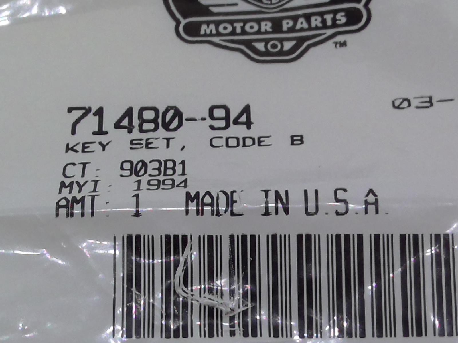 Harley Part #71480-94 - NOS Genuine HARLEY DAVIDSON KEY SET OEM CODE B