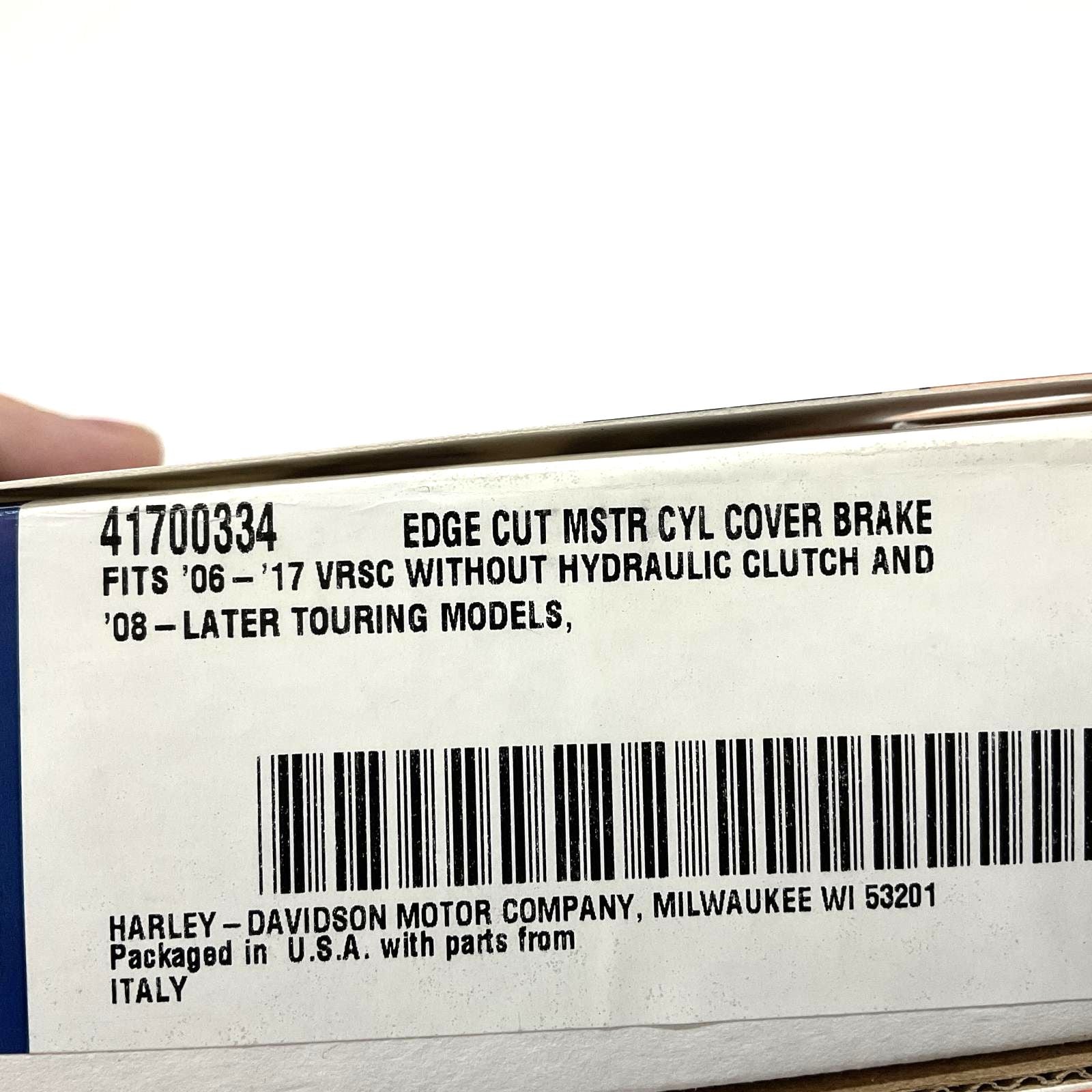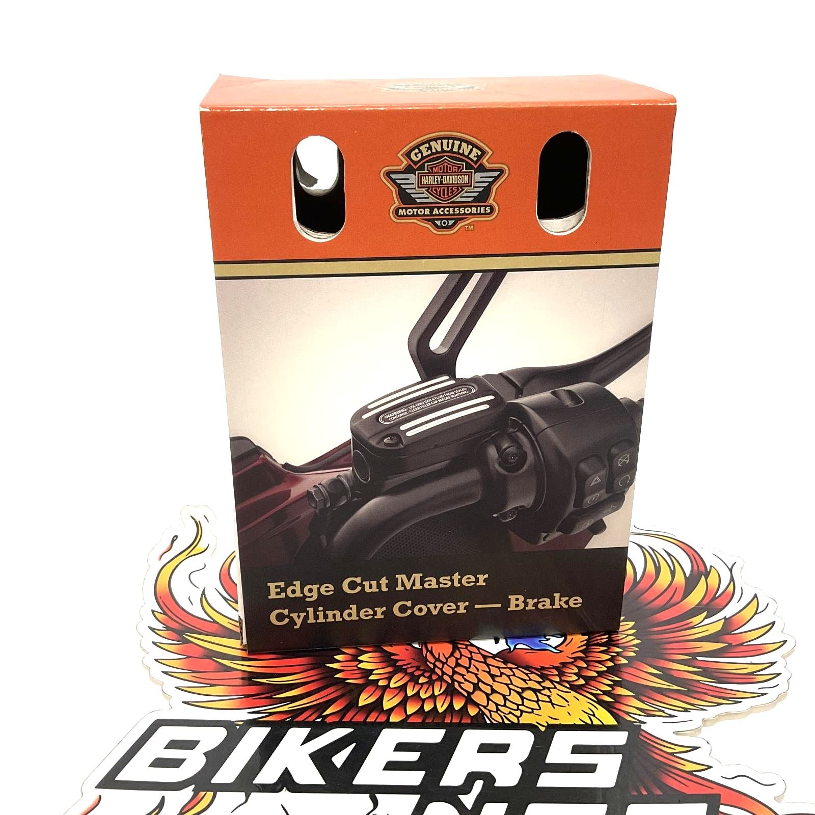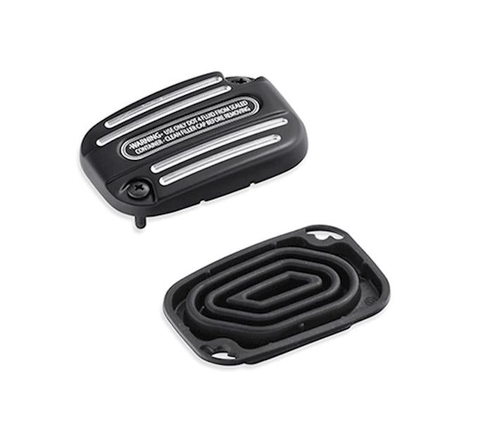 The Edge Cut master cylinder cover features a crisp anodized finish that is machined to expose the highlights or raw aluminum. The contrasting cut back look makes a powerful visual statement, and works great with both traditional and contemporary customizing styles. This cover is a direct replacement for the Original Equipment master cylinder cover. Easily installed kit includes cover, gasket, and black hardware.